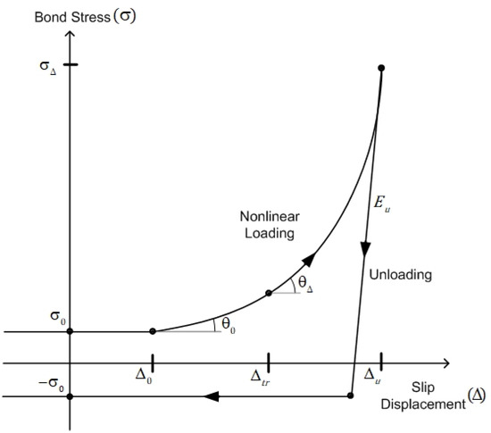 3.2. Formulation of Bond–Slip Model for Unloading/Reloading