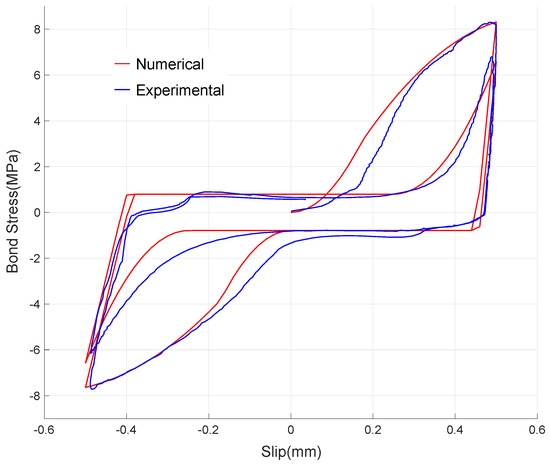 Numerical bond–slip result comparing with experimental one for two cycles.
