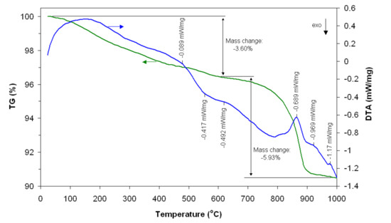 TG-DTA curves of gadolinium aluminate (before heat treatment).
