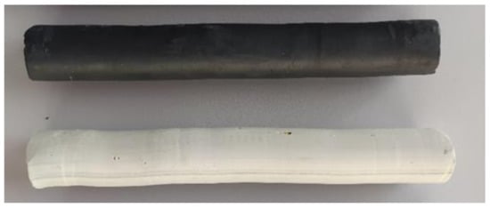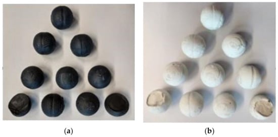 A modelling material of the commercial plasticine type, which was produced by the manufacturer PRIMO (Italy, Via Bassa)—who manufacture products based on synthetic waxes—was used for physical modeling tests of the hot skew ball rolling process. White and black plasticine was used for the modelling analysis. The plasticine used is a non-metallic material based on synthetic wax, with clays, oils and color pigments used as additives.