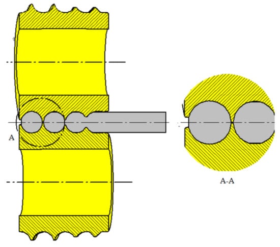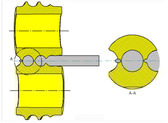 In order to produce balls with the correct shape and a high surface quality in the skew (helical) rolling process, three main conditions must be met in tool design. The first condition specifies that the volume of material enclosed in the pass should be constant during forming. The second condition specifies that the changes in the profile and dimensions of the flange of the blank should be equal to the elongation of the impression to be compressed. In the optimum variant, the length of the compressed bridge should be equal to the width of the top of the flange. If the increase of the flange width is smaller than the elongation of the bridge, the material will move away from the pass and a lapping will form on the surface of the pass, which, in the further process, will be rolled into a teeming arrest. On the other hand, if the variation in flange width is greater than the elongation, axial tensile stresses will be generated in the compressed bridge, which may result in its breaking. The last condition is that the closing of the billet should be achieved over the minimum possible forming distance. Too long a forming path has a negative effect on the cracks within the formed product [