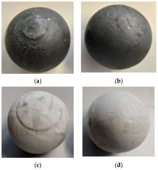 Figure 12c,d shows a comparison of the surface quality of spheres from white plasticine.
