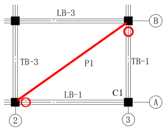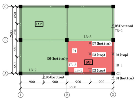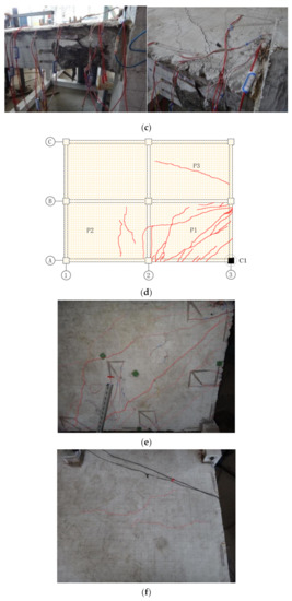 - Crack patterns developed in the frame specimen. Flexural cracks appeared in slabs P1, P2 and P3. In particular, both flexural cracks and twist cracks emerged in the beams of DAP. Plastic hinges firstly appeared in the farther end of TB-1 because of its greater stiffness and finally formed in the farther ends of LB-1 and TB-1. A plastic hinge line was completely acquired in the diagonal of P1.