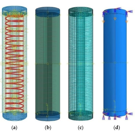 - Piscesa, B.; Attard, M.M.; Samani, A.K. 3D Finite element modeling of circular reinforced concrete columns confined with FRP using a plasticity based formulation. Compos. Struct. 2018, 194, 478–493. [Google Scholar] [CrossRef]