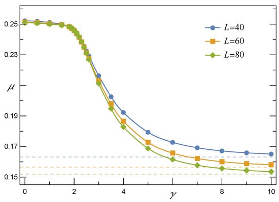 Since the skewness vanishes in this range of , then the skew-normal distribution effectively becomes the standard normal one and the resulting survival function resembles . Moreover, the presence of a mean-field-like effective pillar-to-pillar interaction is supported by empirical values of that were computed according to Equation (13) and are presented in Figure 7. These values refer to of Equation (17). It is seen in Figure 7 that if , then the values of related to arrays with different numbers of pillars converge with each other. This vanishing system-size-dependence justifies the applicability of mean-field approximation and indicates that loads are transferred among pillars according to the GLS-like rule. On the other hand, when , the system-size-effect becomes visible. Hence, in the large N limit the mean approaches the power-law expression given by Equation (14).