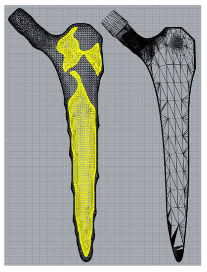 - Jun, Y.; Choi, K. Design of patient-specific hip implants based on the 3D geometry of the human femur. Adv. Eng. Softw. 2010, 41, 537–547. [Google Scholar] [CrossRef]