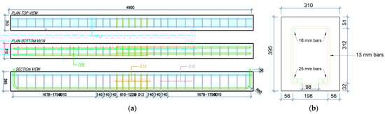 Reinforcement details for C27Y500S13 and C24Y300S13 beams: (a) Longitudinal (b) Transverse.
