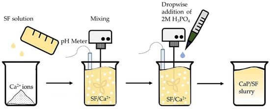 CaP was synthesized in situ similar to HAp wet precipitation method [], which is shown in Figure 4.