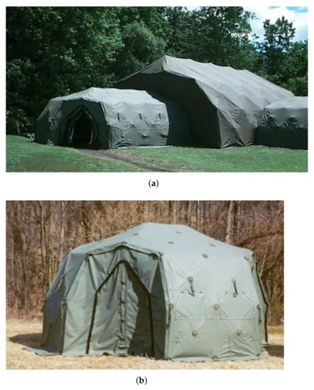 The deployment of deployable rapid assembly shelters (DRASH) in a field emergency can be accomplished minutes after arrival at the crisis areas for both military and civilian missions. DHS Systems provides state-of-the-art technology in such portable sheltering. Figure 1 depicts two typical DRASH Shelters which can be easily handled by six people within 20 to 30 min using a low pressure air bladder. The J shelter features the same proven DRASH technology as the smaller XB shelter and is currently one of the largest single unit shelters manufactured by DHS Systems. The J model considered in this analysis measures externally and provides more than 1100 of usable interior floor space.