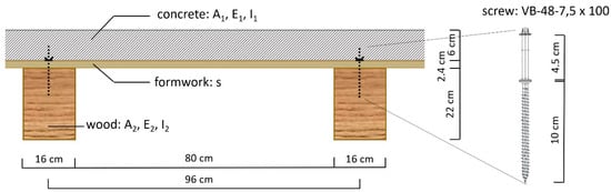 - Kuhlmann, U.; Schänzlin, J.; Michelfelder, B. Calculation of wood-concrete composite floors. Beton-Und Stahlbetonbau 2004, 99, 262–270. (In German) [Google Scholar] [CrossRef]