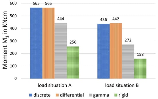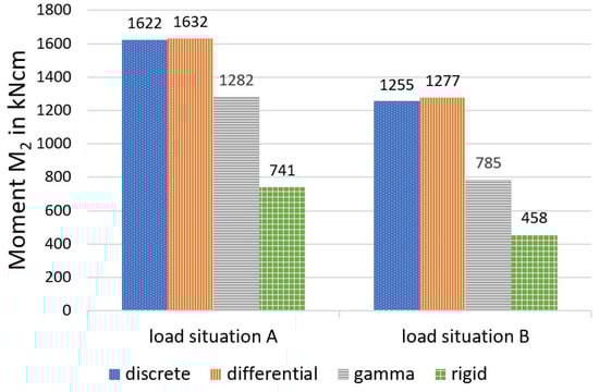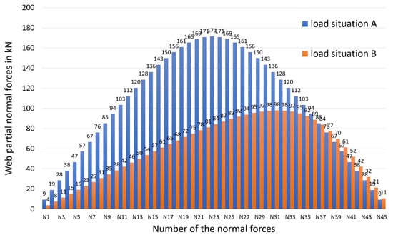 | A | 565 kNcm | 1622 kNcm | 171.5 kN | −1.35 kN/cm2 | 1.74 kN/cm2 |