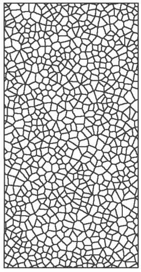 In this study, the Voronoi method was selected to build a random joint model with a width of 50 mm and a height of 100 mm. How cracks appear and develop was studied by observing changes in the modelled contacts.