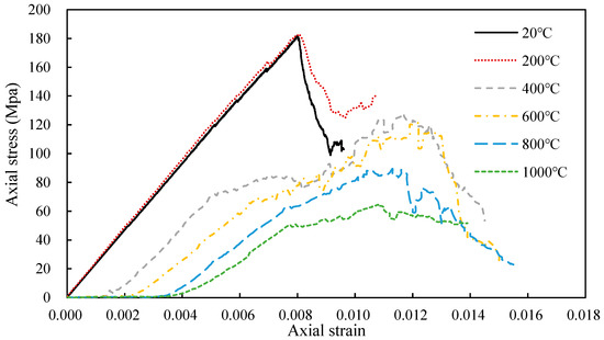 4.2. Stress-Strain Curves for Granite after Heat Treatment at Different Temperatures