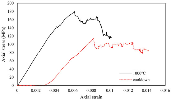 Stress-strain relationship for rock at 1000 °C and post cool-down (reprinted from [26] with permission of Springer Nature).
