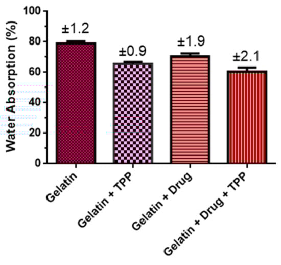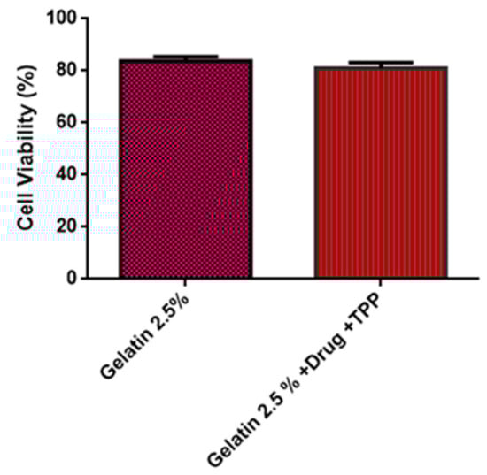 | Gelatin 2.5% + Drug + TPP | 86% ± 2.9 | 100% |