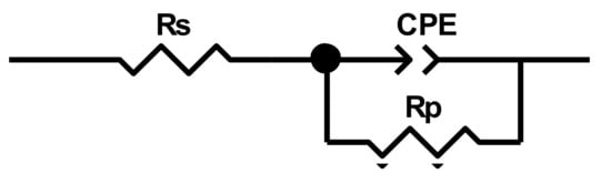 The equivalent electrical circuit proposed for modeling corrosion processes, with polarization resistance Rp as Faradaic impedance.