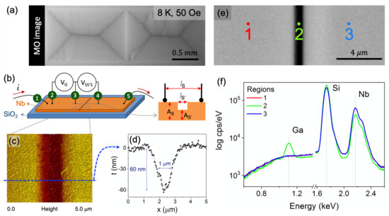 - De Leo, N.; Fretto, M.; Lacquaniti, V.; Cassiago, C.; D’Ortenzi, L.; Boarino, L.; Maggi, S. Thickness modulated niobium nanoconstrictions by focused ion beam and anodization. IEEE Trans. Appl. Supercond. 2016, 26, 1–5. [Google Scholar] [CrossRef]