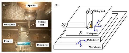Figure 2. (a) Experimental setup and (b) illustration of cutting parameters in asymmetry milling.