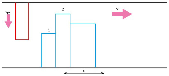 where TBC is the time between contacts, and s is the width of the asperity. As for the pin, its downwards velocity as it reaches the next asperity can be calculated as follows: