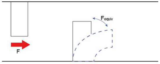 In the case of breaking asperities, once the asperity has broken off (assuming it breaks off at its base), a new asperity is generated at its place, creating a new asperitical map, the new asperitical map must be determined using Equation (20). However, the wear function must be calculated. Under the assumption that the asperity behaves as a cantilever beam allows us to calculate the stress and the deflection of the asperity when acted on by a point force. This is shown in Figure 6: