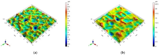The T800RC 120–140 Hommel-Etamic device (Jenoptik, Villingen-Schwenningen, Germany) was used for the analysis of the 3D surface topography. The area of the scanned surface was 4.0 mm × 4.0 mm. The Hommel Map Basic v. 6.2 software (Jenoptik, Villingen-Schwenningen, Germany) was used for determination of the parameters of 3D surface roughness.