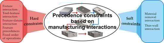 According to [39,40], hard and soft constraints can be divided into several types. Figure 2 represents the schematic illustration of precedence constraints based on manufacturing relationships among features.