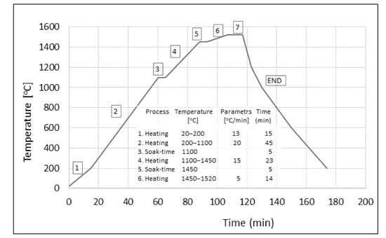 Scheme of single heat treatment: (stage 7) 20 min liquid phase sintering at temperature 1520 °C.