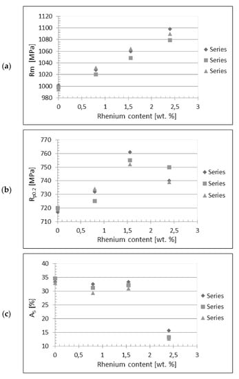 - The addition of rhenium increases the strength properties of WHA. The value of tensile strength and proof strength increases with increasing shares of rhenium in WHA.