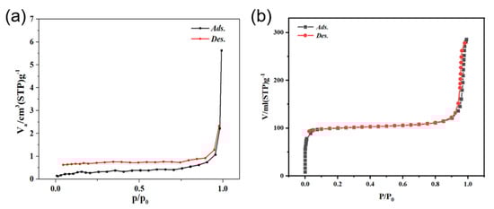 (a) The N2 adsorption−desorption isotherm of BiVO4 nanorods; (b) the N2 adsorption−desorption isotherm of BiVO4@ZIF−8.