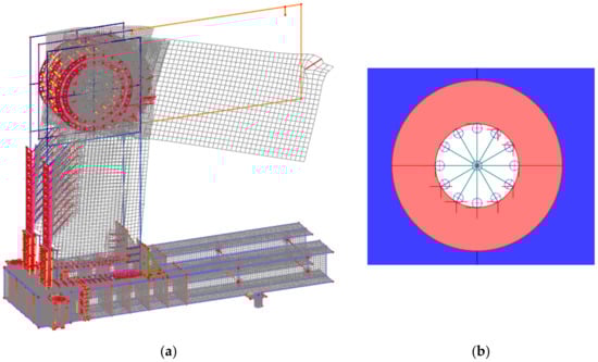 The 3D computational model: (a) total model; (b) part of the model.