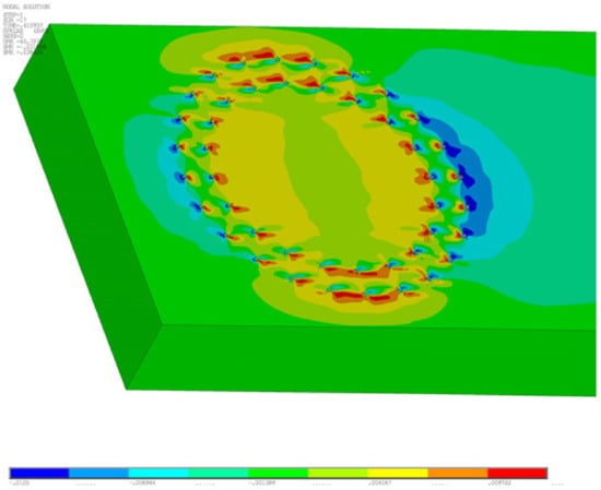 Wood behaves as a strong anisotropic material, but simplification to orthotropic behavior can be considered using numerical methods. When considering orthotropic material, it is possible to use a cylindrical model, which considers the curvature of annual rings, or a rectangular one, which does not consider the curvature of annual rings. We used a numerical orthotropic model, and the effects of annual rings were neglected, namely, the difference between spring and summer wood, local defects of wood such as bumps or cracks, and the variable structure of wood. Table 4 shows elastic constants of the material model of wood in the ANSYSTM program [46].