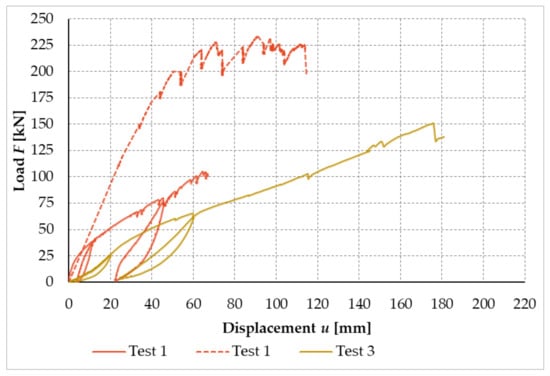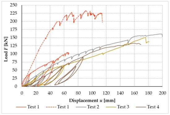Figure 25 shows the load–displacement curves of all performed experimental tests.