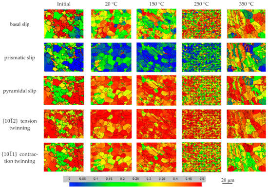 | Deformation Mechanisms | Initial | 20 °C | 150 °C | 250 °C | 350 °C |