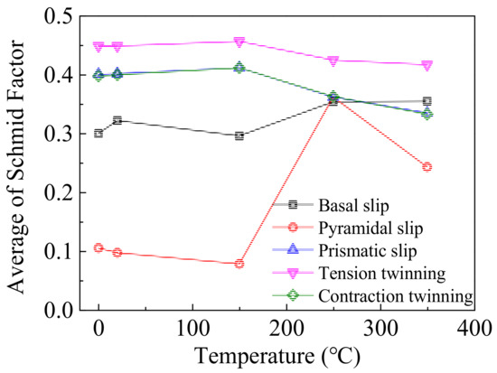 - At lower temperatures (≤250 °C), when the loading direction is parallel to the c-axis of the grains, the pyramidal <a> and <c+a> slip are the particularly predominant deformation mechanism. At higher temperatures (≥250 °C), tension twinning is the predominant deformation mechanism. Otherwise, the predominant type of the DRX mechanism of the wrought AZ31-ND sheet is RDRX.