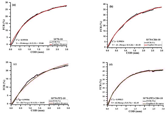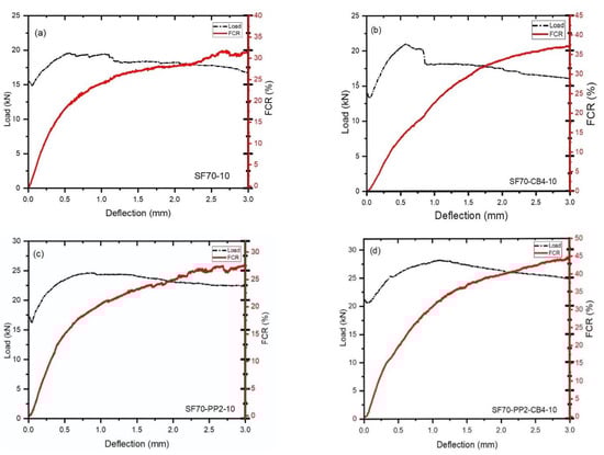 - The hybrid use of polypropylene fibers with steel fibers decreased the (FCR) values, but as triphasic material (SF + PP + CB), they increased the (FCR) values due to the conductive characteristics of carbon black.