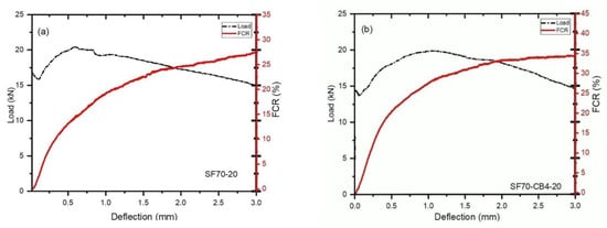 4.3. Effect of Different Admixtures and Coarse Aggregates Size on the Flexural Load-Bearing Capacity and (FCR)