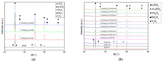 Therefore, stabilizers of Gd2O3 and Yb2O3 instead of Y2O3 could maintain the stability of the t-phase accompanied with reducing the thermal conductivity of the material. When Gd2O3 and Yb2O3 were added into YSZ, Gd3+ and Yb3+ would play the same role as Y3+, replacing the original monoclinic phase, which would improve the performance of YSZ without changing its tetragonal structure as shown in Figure 9d.