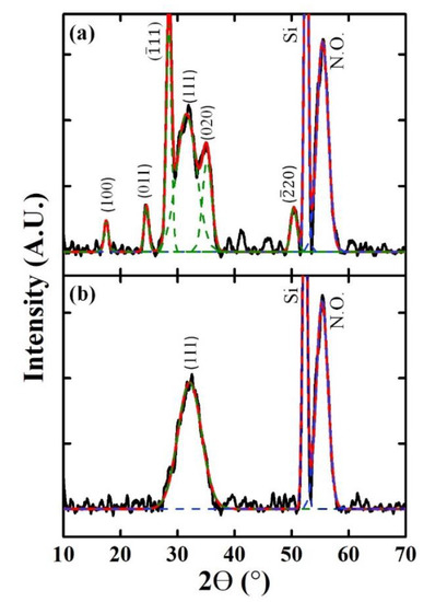 - Luo, X.; Li, Y.; Yang, H.; Liang, Y.; He, K.; Sun, W.; Lin, H.-H.; Yao, S.; Lu, X.; Wan, L.; et al. Investigation of HfO2 thin films on Si by X-ray photoelectron spectroscopy, Rutherford backscattering, grazing incidence X-ray diffraction and variable angle spectroscopic ellipsometry. Crystals 2018, 8, 248. [Google Scholar] [CrossRef] [Green Version]