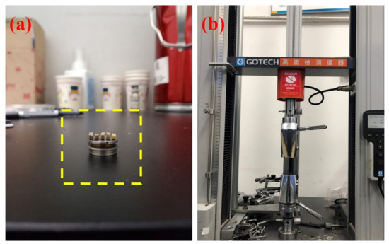 (a) the prepared MPU/EUG specimens for SEM observation; (b) mechanical property testing instrument used in this work.