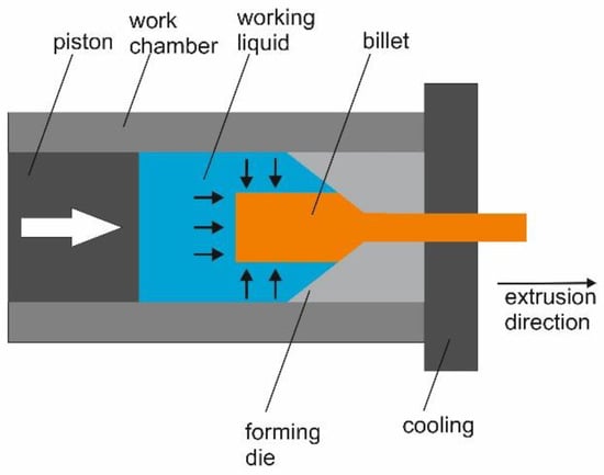 Scheme of the hydrostatic extrusion process.