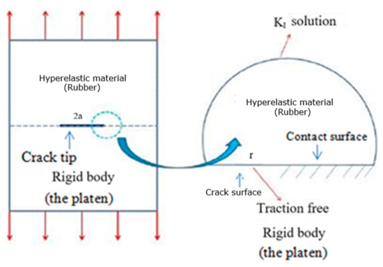 - Aït-Bachir, M.; Mars, W.; Verron, E. Energy release rate of small cracks in hyperelastic materials. Int. J. Non Linear Mech. 2012, 47, 22–29. [Google Scholar] [CrossRef] [Green Version]