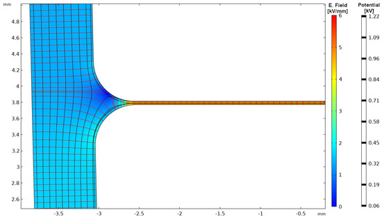 - Calculate the insulation thickness, depending on design field and nominal voltage.The thickness depends on the criterion maximum field in insulation. Actually, in the presence of significant electric field gradients it is not established yet whether reference should be made to the maximum or the mean field: the former will be certainly a conservative criterion, as local damage grows slower to breakdown than under the same field uniformly distributed (this is a topic that would require rapid and dedicated research work). Thickness can be managed to be as thin as possible, depending on the chosen material, thus on the maximum design field (e.g., for the CR material of Figure 4, this could be 4.5 to 5 kV/mm). However, thickness can be increased whether the driving criterion is to reduce the likelihood of PD inception in possible cavities or triple points: see next point.