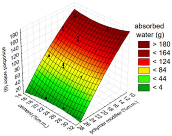 The effect of the simultaneous change in the amount of the ZH1/ASA polymer modifier and cement on the water permeability expressed in (g) of the absorbed water.
