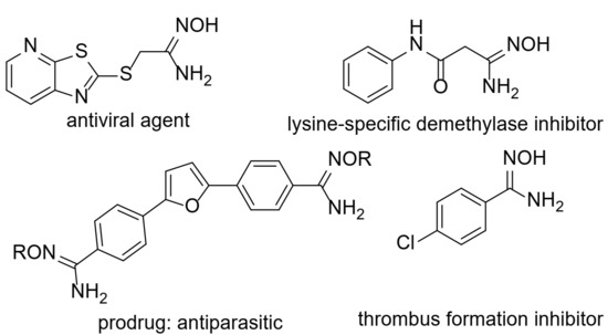 Amidoximes perform many activities on various microorganisms and complex eukaryotic organisms. Thus, they are intensively studied as potential drugs, prodrugs or fungicidal or bactericidal substances (Figure 1).