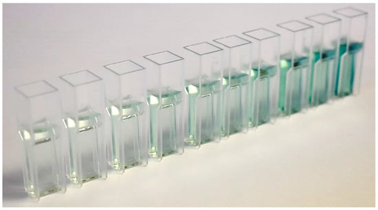 - Skoog, D.A.; West, D.M.; Holler, F.J. Electrogravimetric and colourimetric methods: Colourimetric methods of analysis. In Fundamentals of Analytical Chemistry; West, D.M., Holler, F.J., Eds.; Saunders College Publishing: Philadelphia, PA, USA, 1996; pp. 446–457. [Google Scholar] [CrossRef]