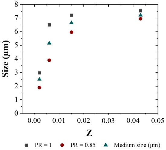 From Table 6, it is possible to observe how the increase in Ohnesorge number (Z) increases the SMD up to a value of around 6–7 µm. Therefore, the particle size is mainly controlled by polymer solution viscosity, which is the main resistance to jet break.