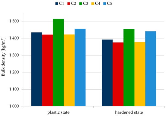 Table 6 and Figure 4 present the results for the bulk density for mortars in the plastic and hardened state.