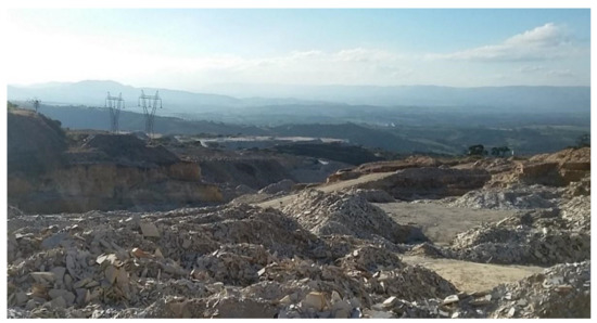 Waste generation is inherent to any process of production or transformation of materials and, in the context of sustainable development, more in-depth studies on waste have been intensified [3,4,5,6]. In the stone industry, for example, different types of waste are produced from extraction from the rock mass to the final operations for the production of slabs with commercial dimensions [7,8,9]. In the case of quartzite mining, large volumes of waste are generated, which may exceed 90% of the exploited material (Figure 1). This is because foliated quartzite slabs are obtained directly from the rock mass, following standards of thickness and length, and the waste generated in mining and processing of these materials becomes a problem for entrepreneurs, with negative environmental impacts, such as: landscape disfigurement; changes in the natural shape of the relief; siltation of water bodies; supply for the native vegetation and instability on slopes of mine waste deposits [10], in addition to causing public health problems, since silica particles are released into the atmosphere that, when inhaled, can cause respiratory damage [11]. These problems (or some of them) should be similar in quartzite and slate (foliated rocks) quarry activities in other regions around the world, notably in the main countries producing dimension stones.