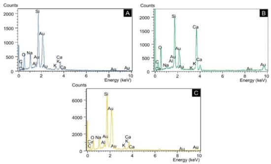 EDS analysis on ASR products. (A) STL0; (B) ALP2; (C) DIA.
