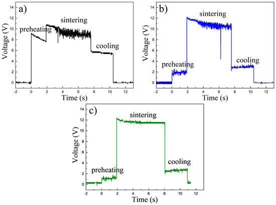 Summarizing the results, the voltage in the preheating step had a significant effect on the homogeneity and quality of sintered bulks. The results show that voltage below 2 V allow sufficient preheating to facilitate the fabrication of uniform and dense samples. The results emphasize the significance of multiple step current profile to suit the rapid change of electrical conductivity experienced by the sintering powder during ultrafast sintering.